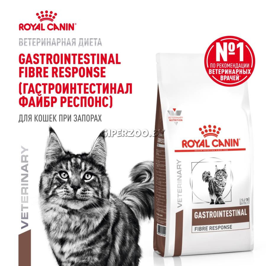 Корм сухой ветеринарный для взрослых кошек Royal Canin Gastrointenstinal Fibre Response, 2 кг - полнорационный диетический для котов.