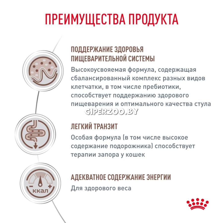Специфическая комбинация определенных видов клетчатки в диете FIBRE RESPONSE Feline способствует формированию фекалий нормальной консистенции, не вызывает диареи, способствует улучшению прохождения содержимого кишечника и таким образом облегчает процесс дефекации у кошек, страдающих запорами.