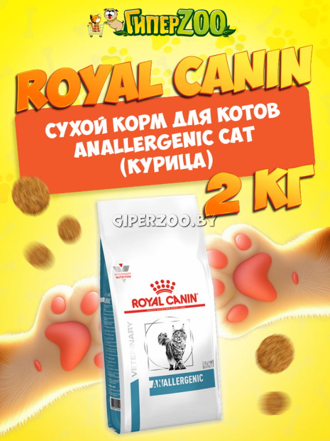 Royal Canin Anallergenic Cat, 2 кг - сухой полнорационный для кошек при пищевой аллергии или непереносимости.