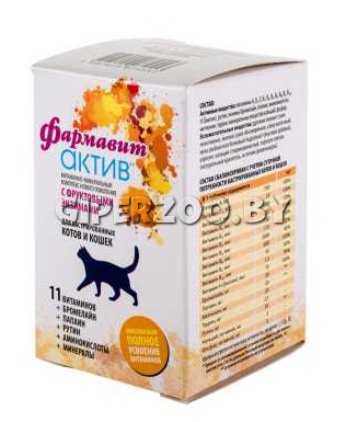Фармавит Актив – витаминно-минеральный комплекс с фруктовыми энзимами, специально разработанный для кастрированных котов и кошек.