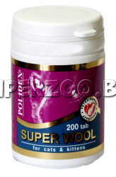 Полидекс 200 Супер Вул, — это витамины для кошек, улучшающие состояние шерсти, кожного покрова, а также заботящиеся о яркой пигментации шерсти. Используются в комплексном лечении различных заболеваний кожи. У котов породы «канадский сфинкс» улучшается состояние кожного покрова без усиления роста шерсти. Биотин нормализует развитие, участвует в процессах обмена углеводов, жиров и белков. В1, В5, В6, В12 отвечают за обменные процессы в базальном слое кожи, улучшают регенерацию эпителия, теплообмен, восстанавливают метаболизм в волосяных луковицах и рост шерсти. Белок улучшает белковый обмен, метаболизм, синтез белков шерсти, оказывает антиоксидантное и противовоспалительное действие. Таурин заботится о состоянии сетчатки глаз, поддерживает сердечную деятельность, репродуктивную функцию, свёртываемость крови, иммунитет, целостность нервной ткани, синтез желчных кислот.