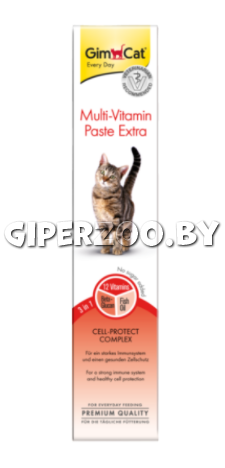 Gimcat Паста мульти-витаминная экстра - это паста с уникальной формулой клеточной защиты содержит комплекс незаменимых полиненасыщенных жирных кислот Омега-3 и Омега-6. Инновационный комплекс 3-в-1 включает 12 жизненно важных витаминов, полноценный рыбий жир и бета-глюкан, которые оказывают комплексное укрепляющее воздействие на иммунную систему. Содержащиеся в рыбьем жире ПНЖК Омега-3 и Омега-6, особенно эйкозапентаеновая (ЭПК, EPA) и докозогексаеновая (ДГК, DHA) кислоты, чрезвычайно важны для восстановления клеточных мембран, а также для улучшения работы головного мозга и зрительной функции. Состав: побочные продукты растительного происхождения, растительные и животные жиры (30,8 %, рыбий жир 8,6 %), дрожжи. Рекомендации по применению Давать ежедневно по 6 см (1 см = прибл. 0,5 г), лучше всего с рук, прямо из тюбика. Также можно класть поверх корма. Кормить при комнатной температуре.