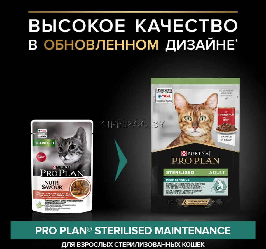 Влажный корм для кошек Pro Plan Sterilised Adult Говядина в Соусе — это специально разработанный корм для стерилизованных кошек, обеспечивающий поддержку здоровья мочевыделительной системы и контроль веса.