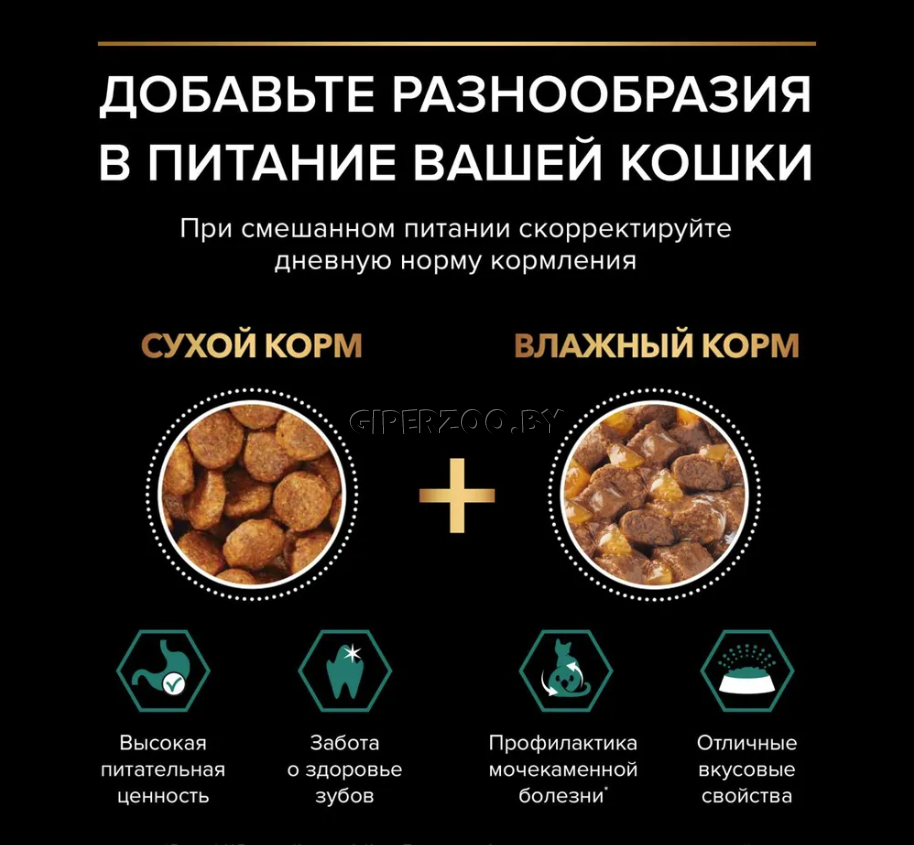 Помогает поддерживать здоровье мочевыделительной системы у кастрированных котов и стерилизованных кошек.