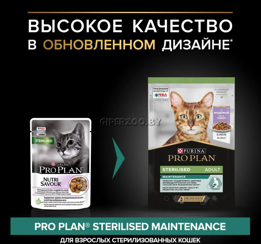 Влажный корм для кошек Pro Plan Nutri savour Sterilised с индейкой (желе), 85 гр