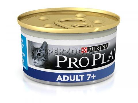 Влажный корм Pro Plan для взрослых кошек старше 7 лет с тунцом, 85г Влажный корм для кошек старше 7 лет Adult 7+ с тунцом Содержит LONGEVIS®, уникальное сочетание питательных веществ, в том числе антиоксидантов, жирных кислот омега-2 и омега-6 и пребиотика, который способствует увеличению продолжительности жизни кошек старше 7 лет и улучшает ее качество. Состав: Мясо и субпродукты, рыба и продукты переработки рыбы (из которых 4% тунец), овощи, масла и жиры, минеральные вещества, продукты переработки овощей, сахара