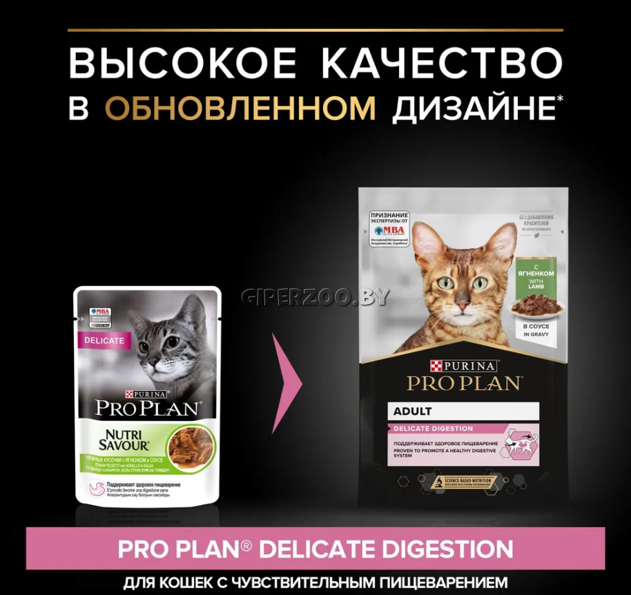Помогает уменьшить кожные реакции, связанные с пищевой непереносимостью. Нежные кусочки в пикантном соусе очень привлекательны для кошек благодаря запатентованной технологии производства департамента PURINA компании Nestle.