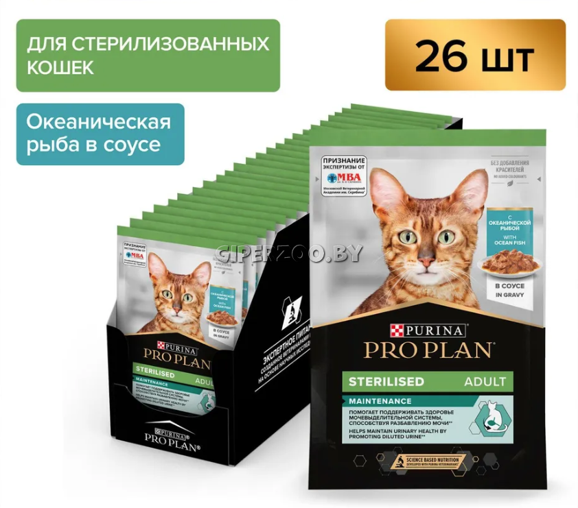 Влажный корм для кошек Pro Plan Sterilised Adult Океаническая Рыба в Соусе — это специально разработан для стерилизованных кошек, обеспечивает сбалансированное питание и поддерживает здоровье мочевыделительной системы.