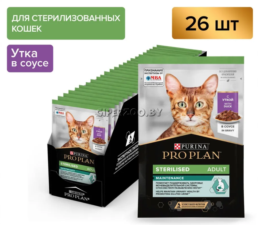 Влажный корм для кошек Pro Plan Sterilised Adult с уткой в соусе – это специально разработанный корм для взрослых стерилизованных кошек. Он помогает поддерживать здоровье и оптимальный вес вашего питомца, способствуя разбавлению мочи и поддержанию здоровья мочевыводящих путей.