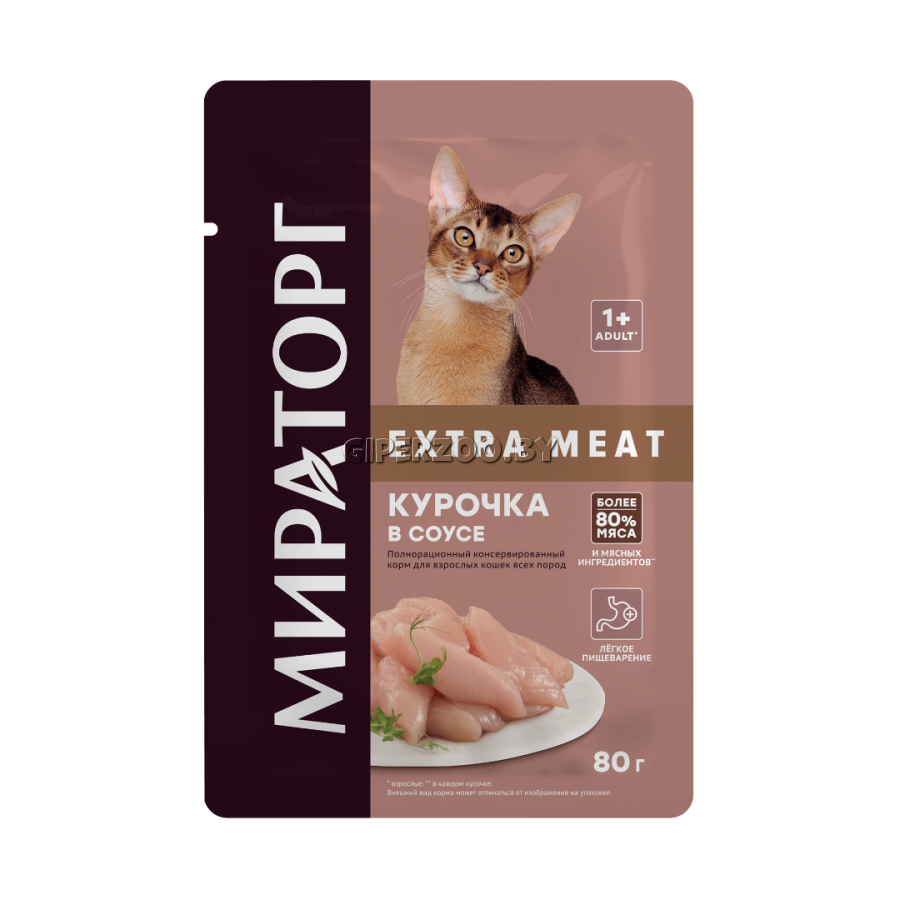 Корм влажный Winner Extra Meat для взр.кошек всех пород, "Курочка в соусе" 80г