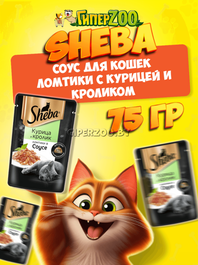 Sheba Ломтики в соусе (Курица и кролик) - это изысканное сочетание точно не оставит вашу кошку равнодушной. Подарите ей незабываемое впечатление от вкуса сочного мясного блюда SHEBA® «Ломтики в соусе».