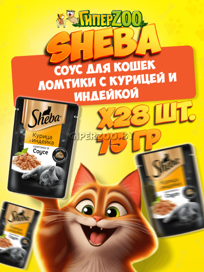Sheba Ломтики в соусе (Курица и индейка) — это изысканное сочетание точно не оставит вашу кошку равнодушной. Подарите ей незабываемое впечатление от вкуса сочного мясного блюда SHEBA® «Ломтики в соусе».