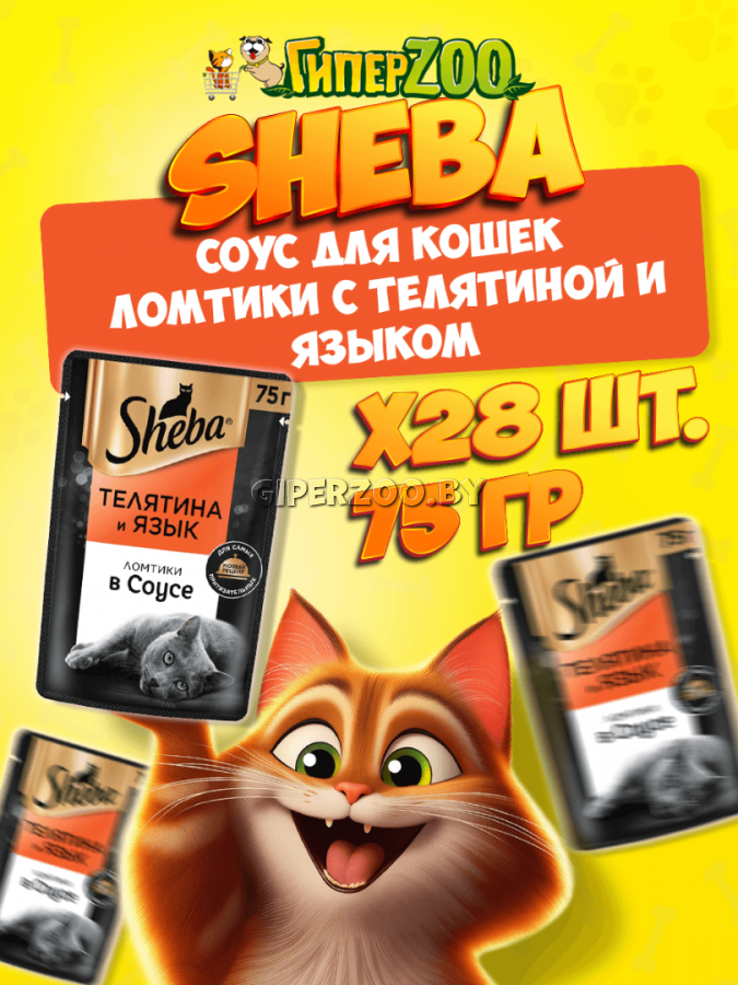 Sheba Ломтики в соусе (Телятина и язык) - это изысканное сочетание точно не оставит вашу кошку равнодушной. Подарите ей незабываемое впечатление от вкуса сочного мясного блюда SHEBA® «Ломтики в соусе».