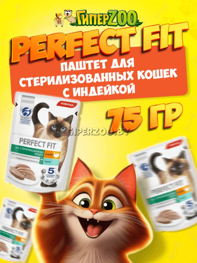 Perfect Fit для стерилизованных кошек с индейкой (паштет) – это специально разработанный влажный корм, который обеспечивает сбалансированное питание и поддерживает здоровье и оптимальный вес вашего питомца. Нежный паштет из индейки делает этот корм не только вкусным, но и полезным для стерилизованных кошек.