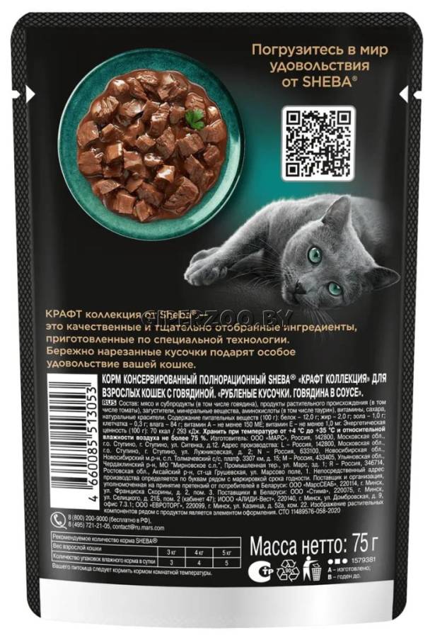 Шеба Craft Collection говядина (соус), 75 гр*28 шт – изысканное мясное блюдо, которое понравится даже самому требовательному питомцу. Восхитительные рубленые кусочки курицы приготовлены по специальной технологии с добавлением обволакивающего фирменного соуса. Соблазните любимицу особой текстурой.