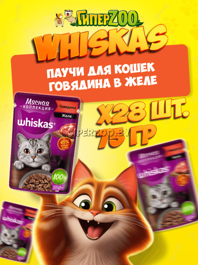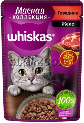 Влажный корм для кошек Whiskas Мясная коллекция (говядина в желе) - это палитра мясных блюд, которые обладают особой волокнистой текстурой. Порадуйте вашу кошку сочными кусочками с говядиной и доставьте ей максимум удовольствия.