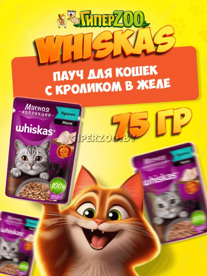Влажный корм для кошек Whiskas Мясная коллекция (кролик в желе) - это палитра мясных блюд, которые обладают особой волокнистой текстурой.
