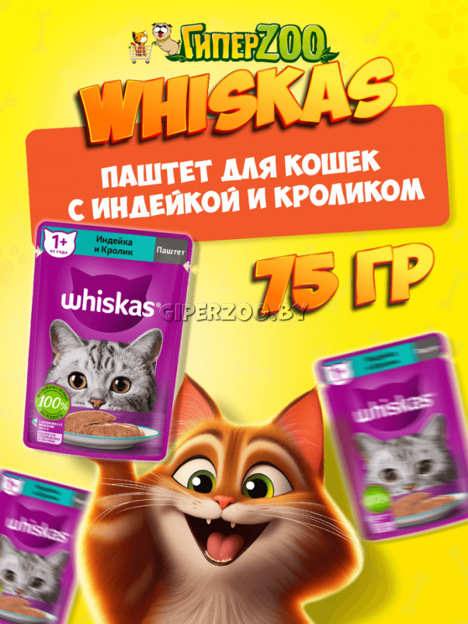 Влажный корм для кошек Whiskas паштет с индейкой и кроликом - это сбалансированный рацион, приготовленный именно так, как любит ваша кошка. Аппетитный паштет с индейкой и кроликом подарит вашей любимице настоящее удовольствие. Жизнь замурррчательна, ведь рацион Whiskas содержит все необходимое, чтобы еда вашей кошки была не только вкусной, но и полезной. Whiskas поддержит иммунитет, позаботится о здоровом пищеварении и здоровье кожи и шерсти вашей кошки. Подходит для стерилизованных котов и кошек.