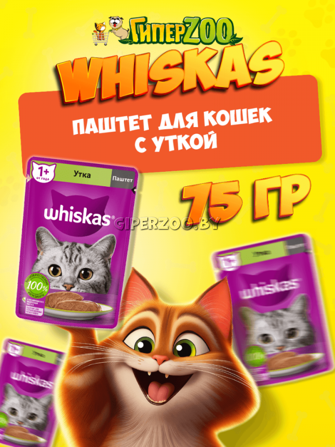 Влажный корм для кошек Whiskas паштет с уткой - это сбалансированный рацион, приготовленный именно так, как любит Ваша кошка. Аппетитный паштет с уткой подарит Вашей любимице настоящее удовольствие. Рацион Whiskas содержит все необходимое, чтобы еда Вашей кошки была не только вкусной, но и полезной.