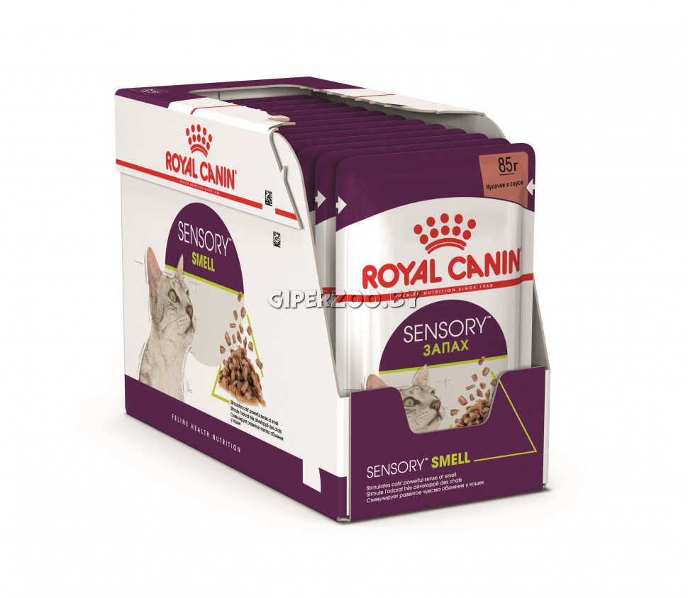 Royal Canin Sensory Smell (соус) 85 гр Sensory Smell подходит для взрослых кошек старше 12 месяцев. Стимулирует сильное обоняние кошек. Хорошее самочувствие кошек улучшается, если в их рационе есть сенсорные вариации. ROYAL CANIN® SENSORY стимулирует чувства кошек и улучшает их опыт кормления. Разработано для соответствия оптимальному профилю макроэлементов, который инстинктивно предпочитают взрослые кошки. Стимулирует сильное обоняние кошек.