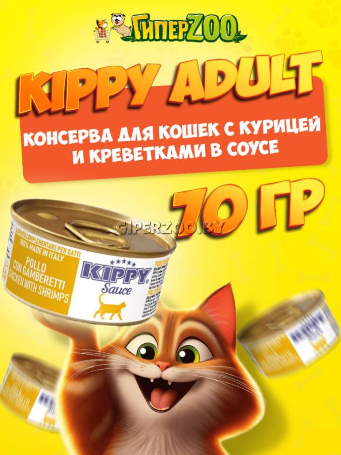 Kippy Sauce Cat курица с креветками в соусе — консервы суперпремиум класса для взрослых кошек