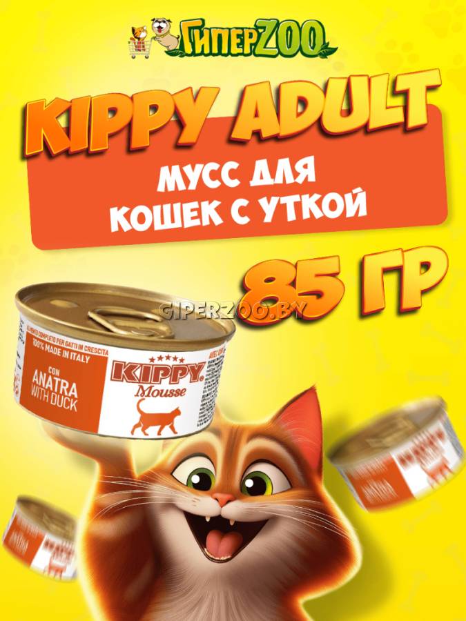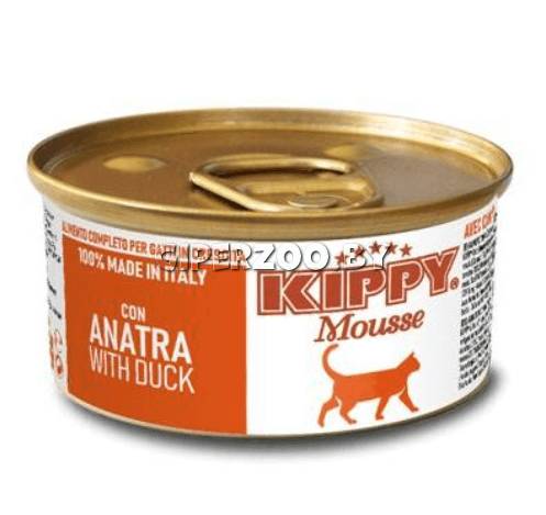 Kippy Mousse Cat Мусс с уткой – это полноценный корм превосходного качества, на 100% произведенный в Италии с соблюдением лучших производственных стандартов, приготовленный исключительно из свежей рыбы и мяса, без использования муки, красителей и консервантов. Очень вкусный, идеально подходит для удовлетворения даже самых требовательных гурманов.
