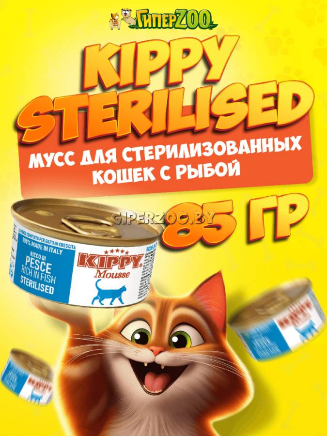 Консервированный корм Kippy Mousse Sterilised Cat мусс с рыбой, 85 гр - это нежный паштет из мяса рыбы для взрослых стерилизованных кошек - прекрасное дополнение к основному рациону.