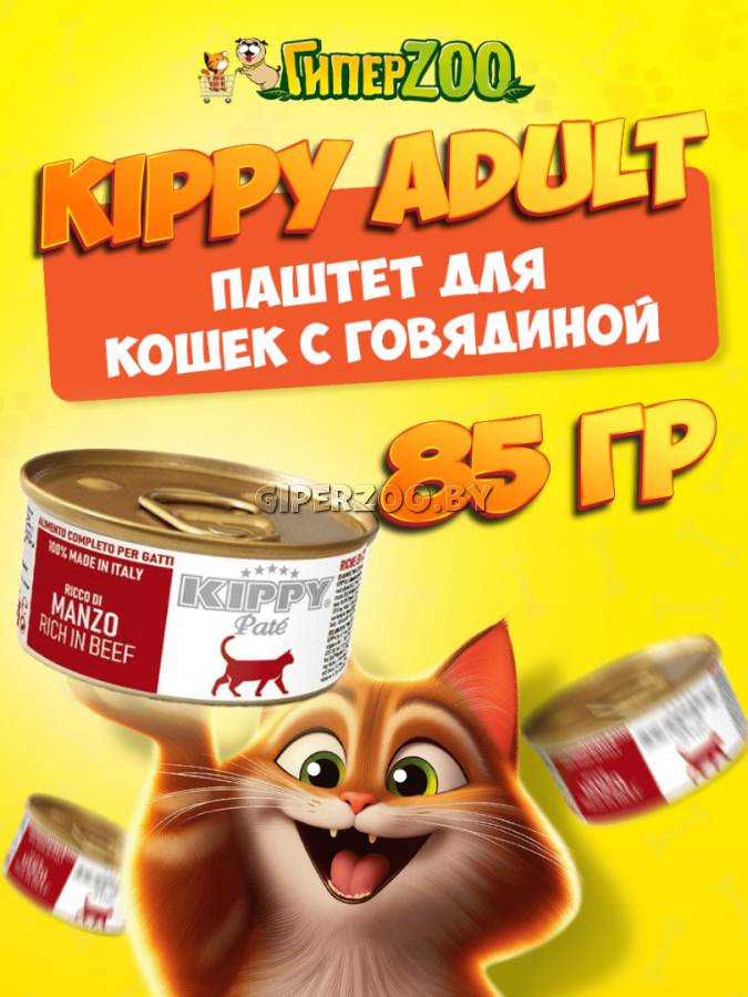 Влажный консервированный паштет Pate Cat Adult Beef 85 гр от Kippy подходит для взрослых котов всех пород.