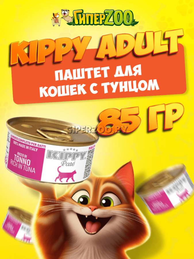 Консервированный паштет для кошек Kippy Pate Cat паштет с тунцом, 85 гр от бренда Kippy подходит взрослым животным всех пород В рецептуре корма используются только безопасные и качественные компоненты, в составе которых не найдутся продукты ГМО, красителей или консервантов.