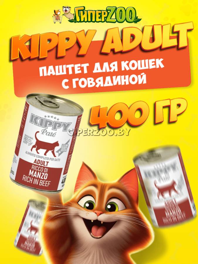 Влажный консервированный паштет Pate Cat Adult Beef 400 гр от Kippy подходит для взрослых котов всех пород.