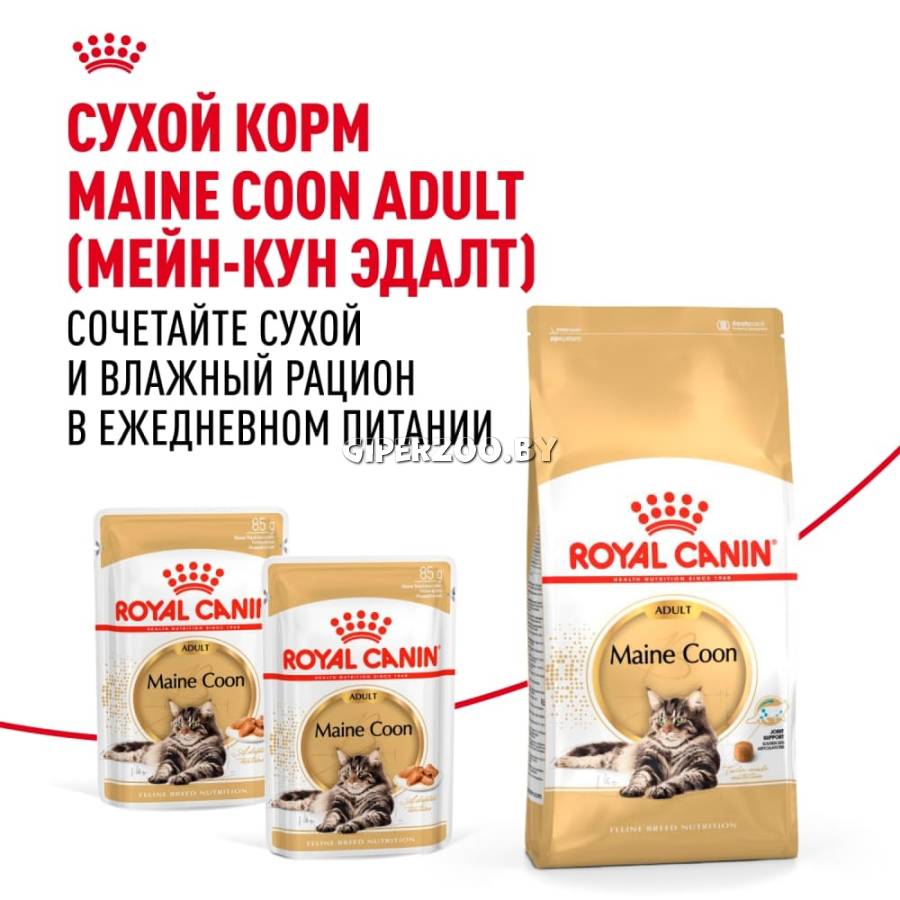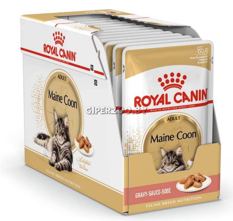 Консервы Royal Caniin Maine Coon Adult в соусе разработаны с учетом особых потребностей мейн-кунов.