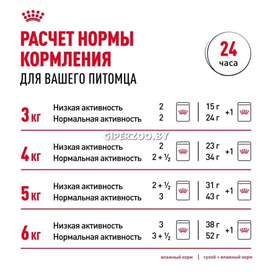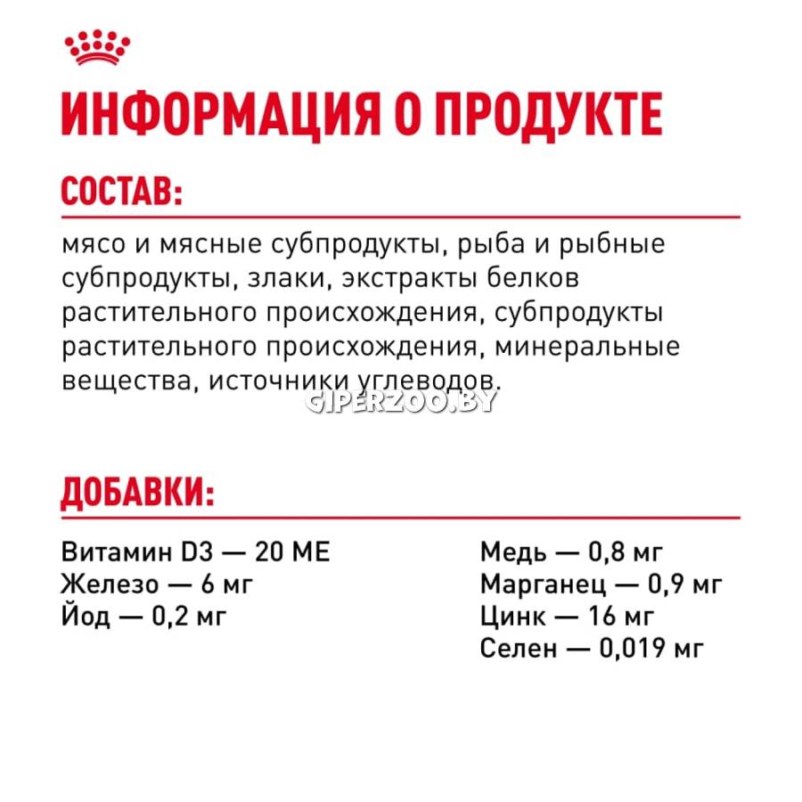 При разработке корма принималась в расчет не только его вкусовая привлекательность, но и его способность поддерживать нормальный вес животного и здоровье его мочевыделительной системы. Royal Canin Instinctive в соусе содержит оптимальное количество калорий и обеспечивает длительное чувство насыщения благодаря сбалансированному соотношению белков и клетчатки.