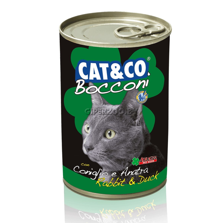 Adragna Cat&Co Кусочки кролика и утки в соусе — это полнорационный корм, разработанный для кормления взрослых кошек, ведущих нормальную физическую активность.