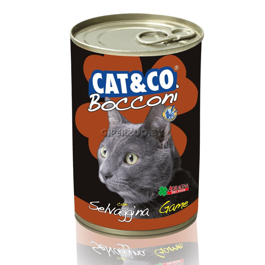 Adragna Cat&Co Кусочки дичи в соусе — это полнорационный корм, разработанный для кормления взрослых кошек, ведущих нормальную физическую активность.