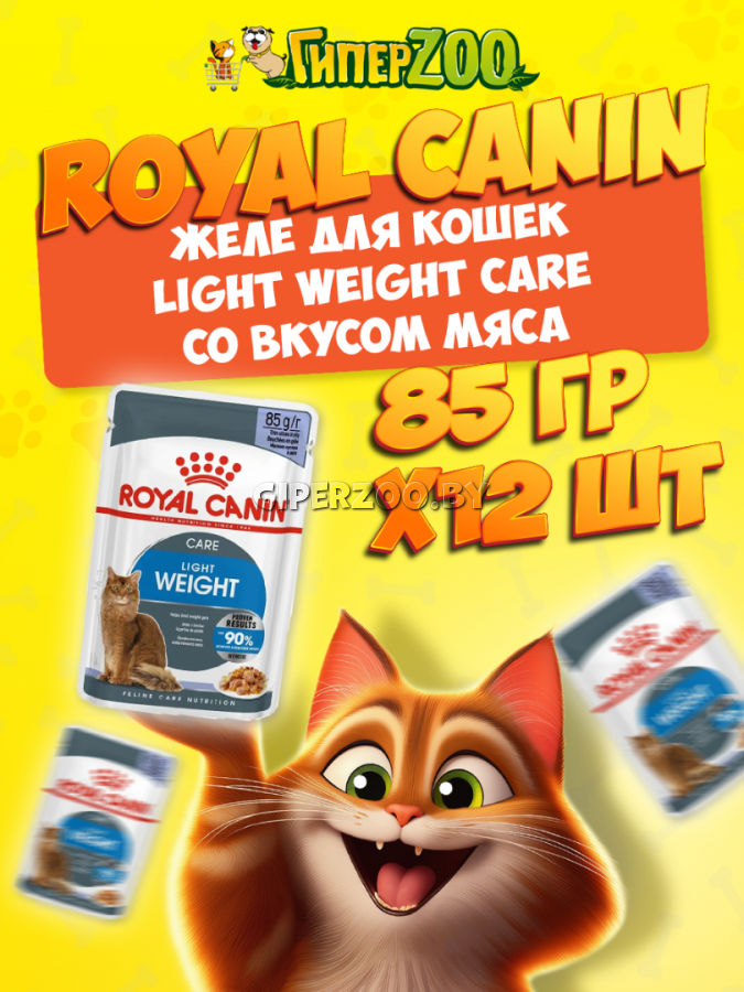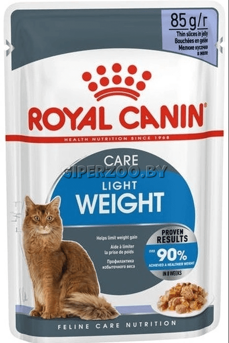 Royal Canin Light Weight Care - полнорационный влажный корм рекомендован кошкам старше 1 года.Излишний вес у кошек обычно бывает вызван несбалансированностью между поступлением энергии (слишком большим количеством еды или высококалорийной диетой) и расходом энергии (недостаточной подвижностью). У взрослых кошек, особенно имеющих лишний вес, может развиться мочекаменная болезнь, возникающая из-за недостаточного потребления воды и редкого мочеиспускания.Если при похудении используется питание с недостаточным содержанием белка, возможны потери не только жировой, но и мышечной массы кошки. -19% калорий Влажный корм Ultra Light 10 помогает сократить количество спонтанно потребляемых кошкой калорий. L-карнитин стимулирует расщепление жиров. Поддержание мышечной массы Способствует поддержанию мышечной массы кошки благодаря высокому содержанию биологически ценного протеина и потере жировой массы при похудении. Здоровье мочевыделительной системы Помогает поддержать здоровье мочевыделительной системы кошки