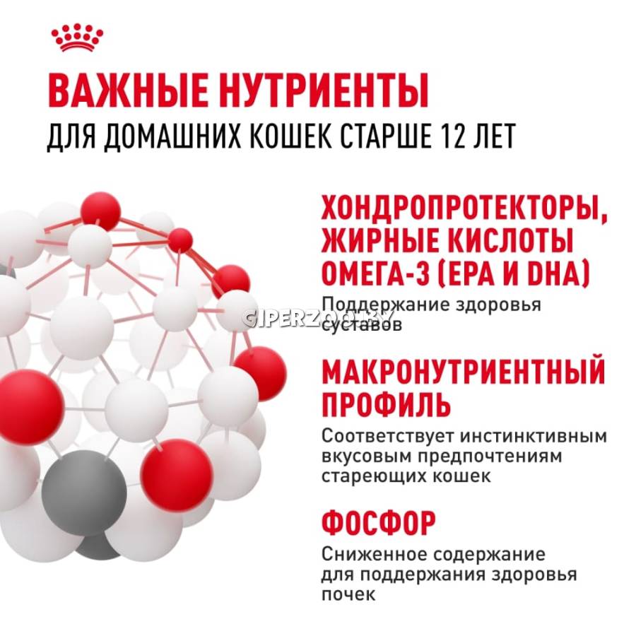 Благодаря высокому содержанию жирных кислот Омега-3 (в особенности ЭПК и ДГК) продукт Royal Canin Ageing 12+ в желе способствует поддержанию здоровья суставов вашей кошки. Благодаря умеренному содержанию фосфора рацион Royal Canin Ageing 12+ в желе способствует поддержанию функции почек и сохранению здоровья мочевыделительной системы.