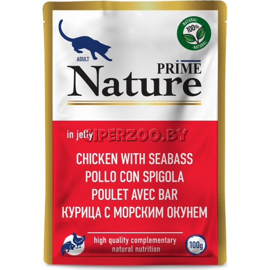 PRIME NATURE для кошек в желе (курица и окунь),100 гр