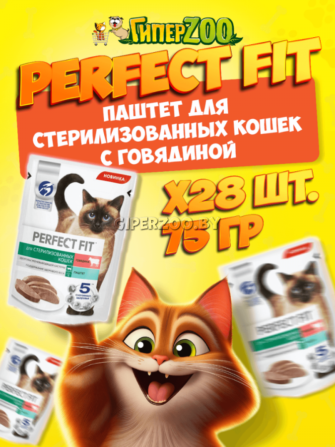 Perfect Fit Sterilised с говядиной – это специально разработанный влажный корм для стерилизованных кошек, который обеспечивает сбалансированное питание и поддерживает их здоровье и оптимальный вес. Нежные кусочки говядины делают этот корм не только вкусным, но и полезным для вашего питомца.