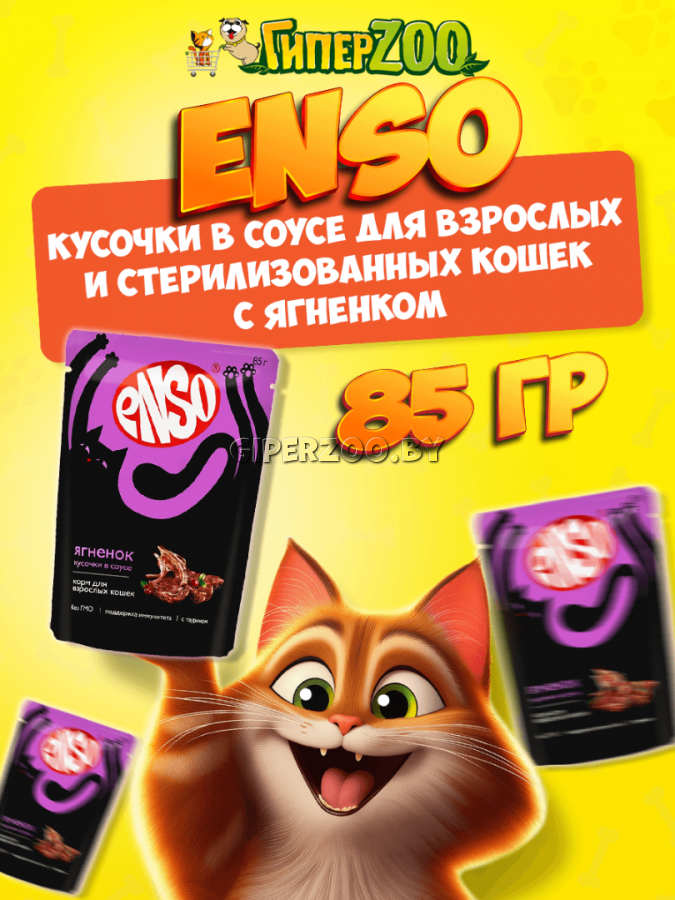 ENSO Пауч для кошек (Ягненок в соусе) — влажный полнорационный корм для взрослых кошек.