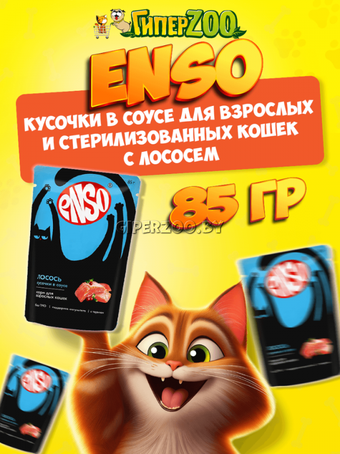 ENSO Пауч для кошек (Лосось в соусе) — влажный полнорационный корм для взрослых кошек.