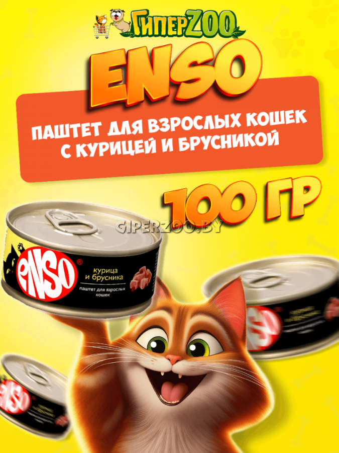 ENSO Консервы для кошек (Курица, брусника) — полнорационный корм для взрослых кошек, паштет с курицей и брусникой.