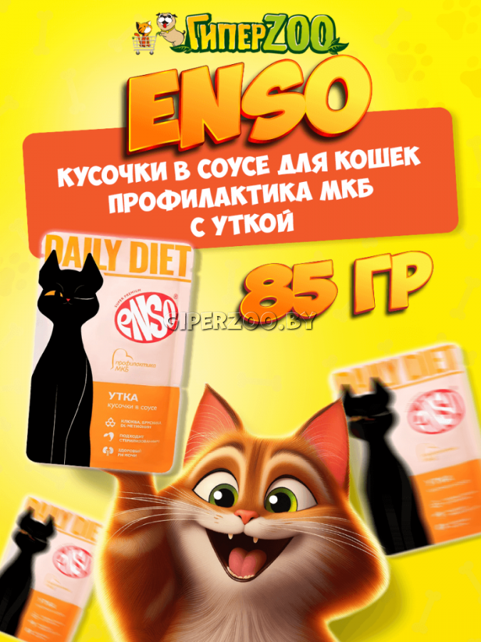 ENSO DAILY DIET Полнорационный влажный профилактический корм для взрослых кошек для профилактики МКБ, кусочки с уткой в соусе.