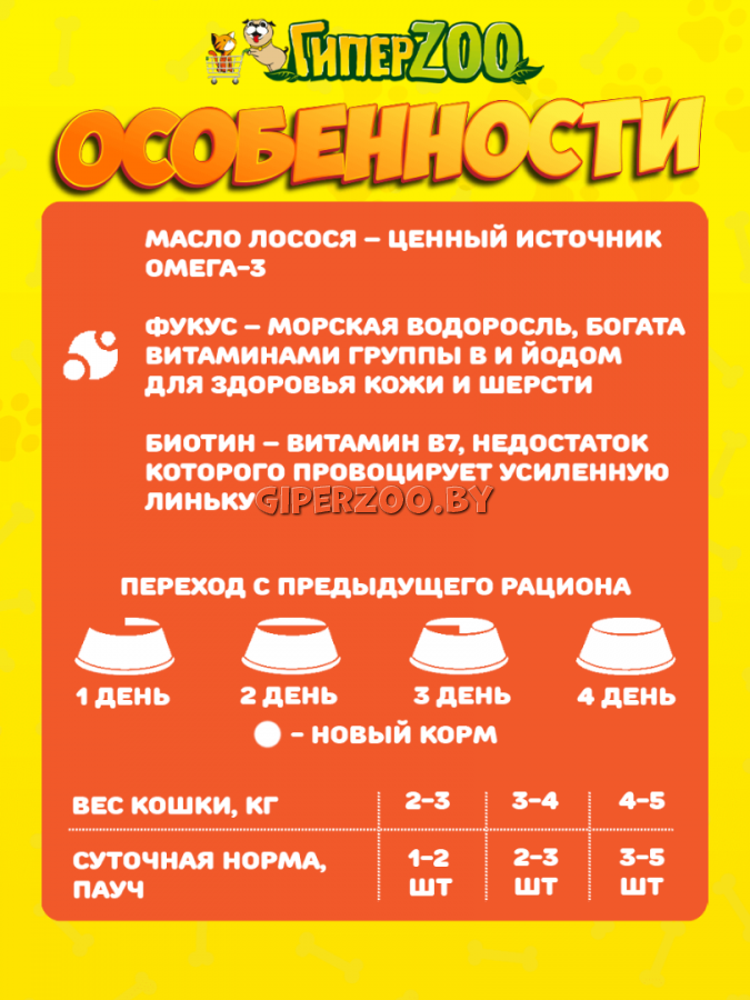 Содержит волокна подорожника – источник растворимой клетчатки, способствующей выводу шерстяных комочков естественным путем.