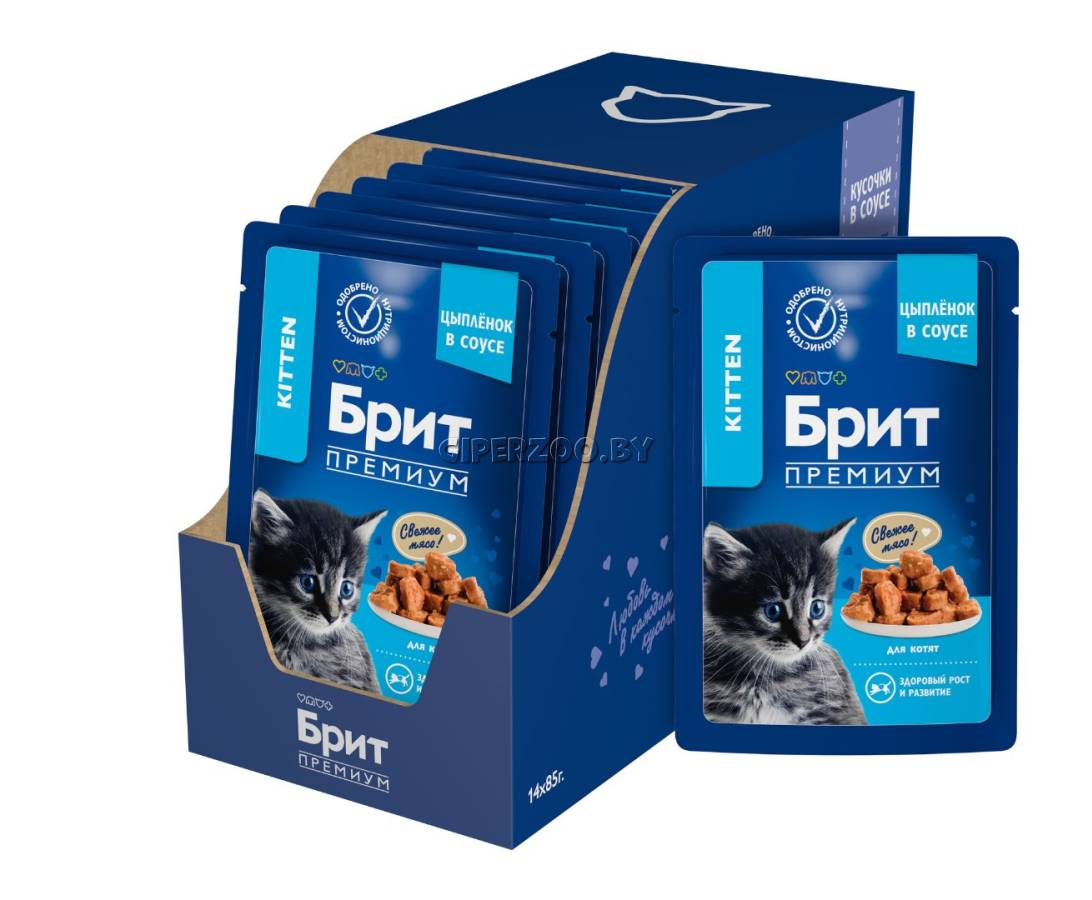 Брит Премиум Пауч для котят с курицей в соусе Cat Kitten (Brit Premium) - это полнорационный влажный корм премиум класса для котят с цыпленком в соусе.