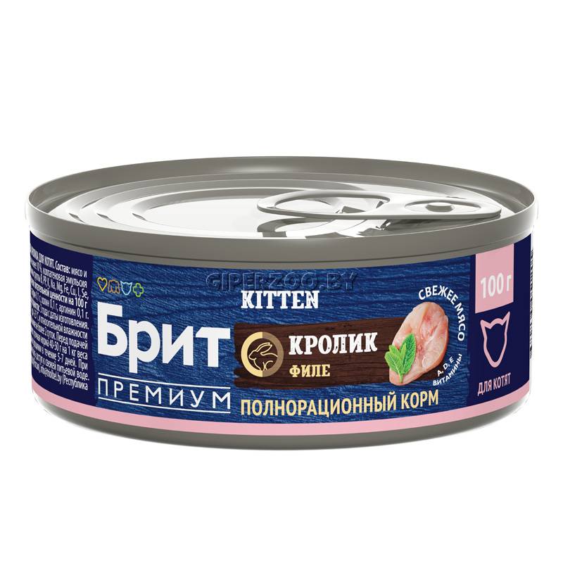 Брит Премиум Консервы для котят с мясом кролика (Brit Premium) - полнорационный консервированный корм премиум класса с кроликом для котят.