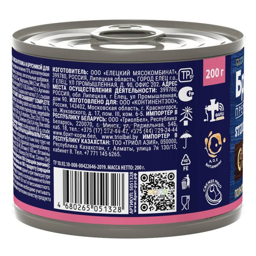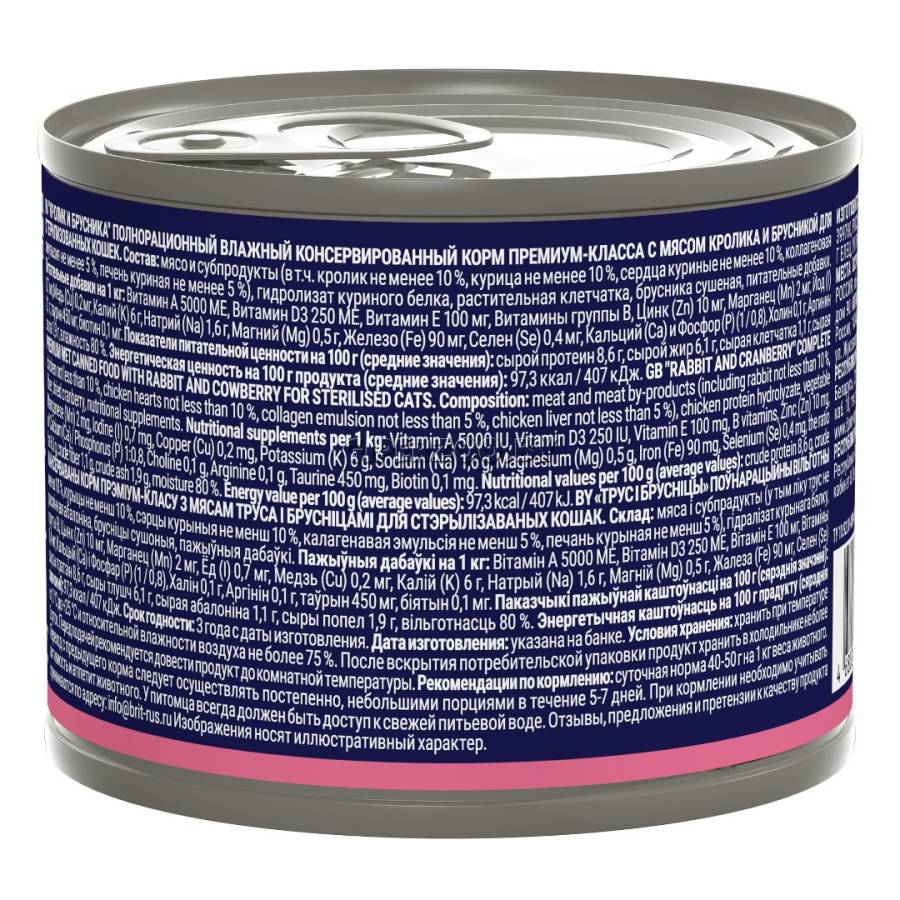 Брит Премиум Консервы для взрослых стерилизованных кошек с мясом кролика и брусникой Cat Sterilised (Brit Premium) - полнорационный консервированный корм премиум класса.