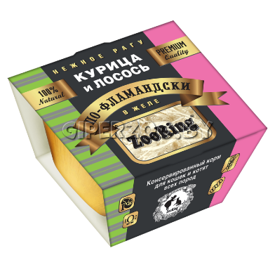 ZooRing Кусочки в желе Курица и Лосось — полнорационный натуральный корм для взрослых кошек.
