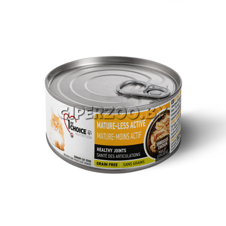 1st Choice Mature or Less Active — влажный корм, предназначенный для пожилых и малоактивных кошек. В этот период животные пьют меньше воды, поэтому достаточное количество жидкости они могут получать при помощи консерв.