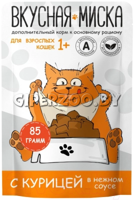 Корм консервированный "Вкусная Миска" для кошек с курицей в соусе для кошек старше 1 года.