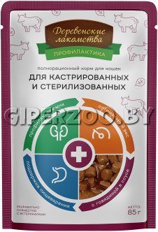 Деревенские лакомства для стерилизованных кошек (говядина в соусе), 85 гр